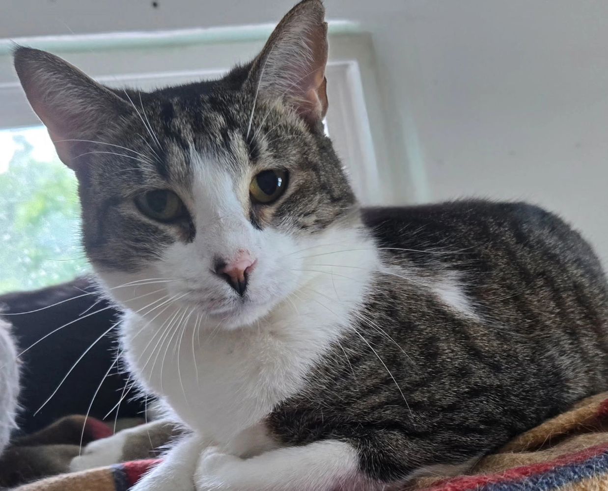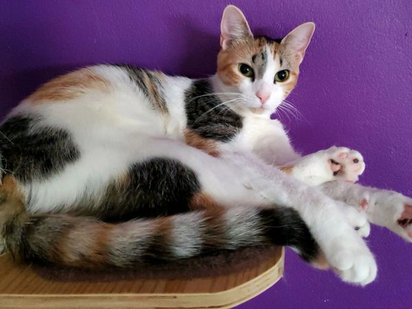 Iris is very sweet . A bit apprehensive till she gets to know you. Can be very talkative at times. Would work best in a home with adults and a kitty friend .